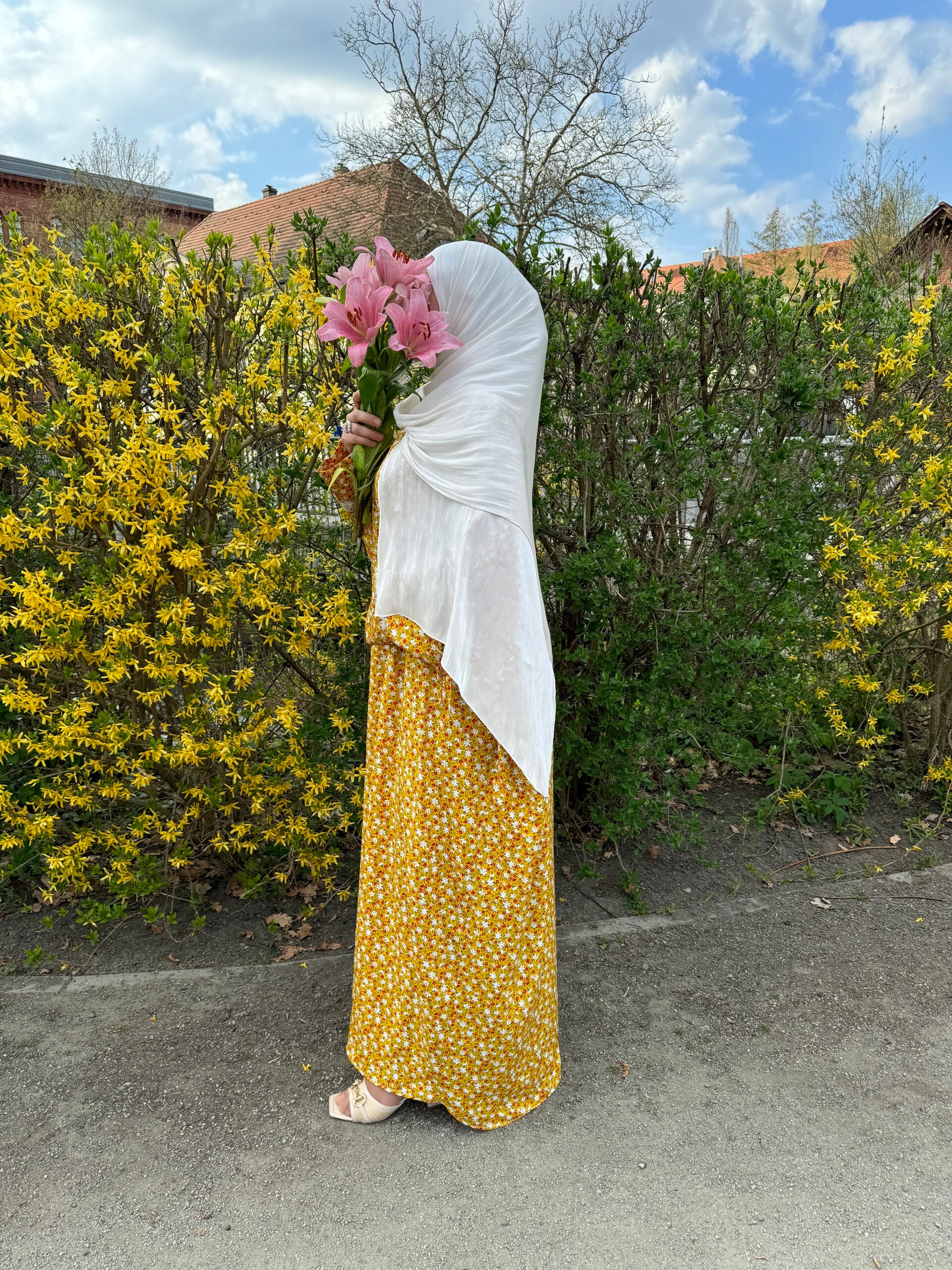 Ich präsentiere euch ein elegantes Abaya-Kleid, das ich selbst entworfen und genäht habe. Die Manschetten sind mit feiner Spitze verziert, und die Ärmel sind flexibel einstellbar – ob kürzer oder länger, ganz nach eurem Wunsch. Dazu habt ihr die Möglichkeit, auch den passenden Schal zu erwerben, den ihr auf dem Foto seht. Ein perfektes Ensemble für stilvolle Auftritte.